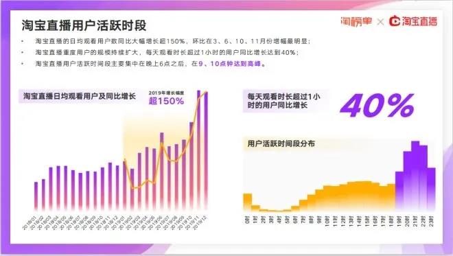 《報告》顯示,淘寶直播的日均觀看用戶數(shù)同比大幅增長超150%,環(huán)比在3、6、10、11月份增幅最明顯;淘寶直播重度用戶的規(guī)模持續(xù)擴(kuò)大,每天觀看時長超過1小時的用戶同比增長達(dá)到40%。