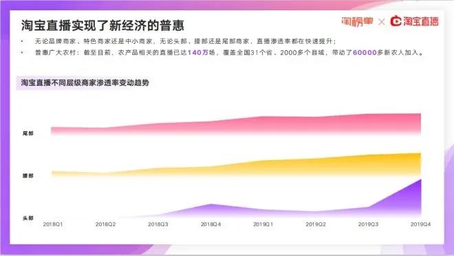 2019年末,淘寶直播在阿里巴巴電商平臺上的整體滲透率夫接近去年同期的兩倍。各行各業(yè)都在將直播作為商業(yè)的一個核心動能,這一新經(jīng)濟(jì)業(yè)態(tài)已經(jīng)進(jìn)入成熟期。
