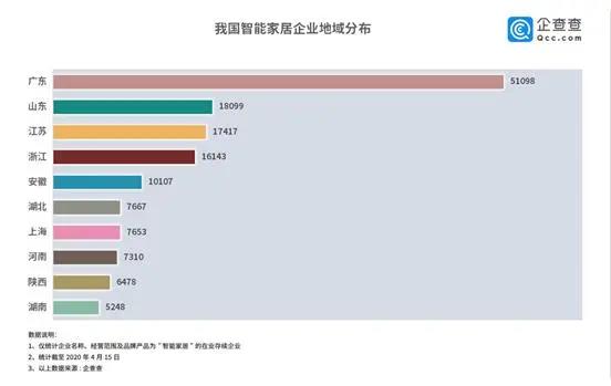 盡管我國智能家居行業(yè)發(fā)展起步較晚,但發(fā)展條件已經(jīng)基本成熟,各地布局也正緊鑼密鼓地進(jìn)行。企查查數(shù)據(jù)顯示,目前廣東、山東、江蘇、浙江等省份智能家居企業(yè)分布較多,其中廣東省企業(yè)數(shù)量遙遙領(lǐng)先,占據(jù)總量26.5%。